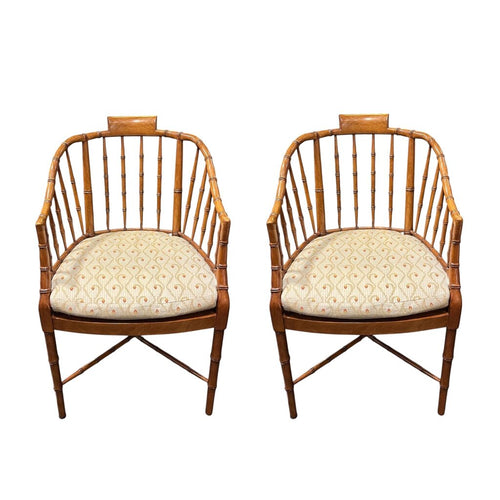 35"H x 21"W x 18"D Baker Pair of Faux Bamboo Caned Seat Chairs w/ Cushion