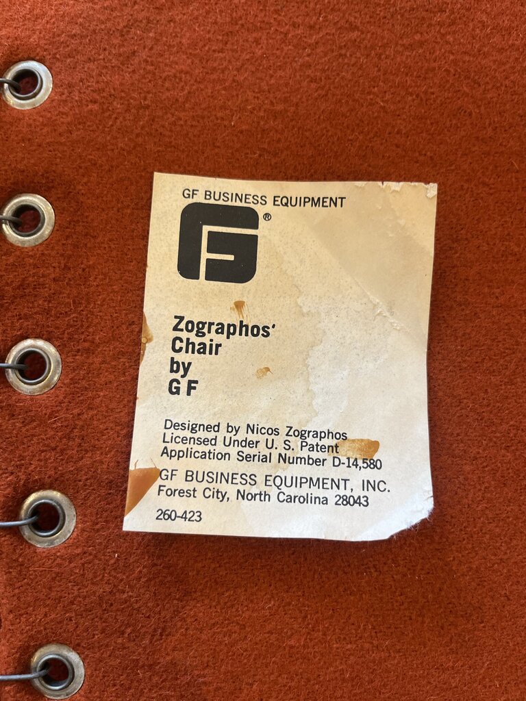 30"H x 20"D x 19"W Nicos Zographos Cantilever Chair by GF w/ Original Wool Fabric 2 Available at Hertel Ave