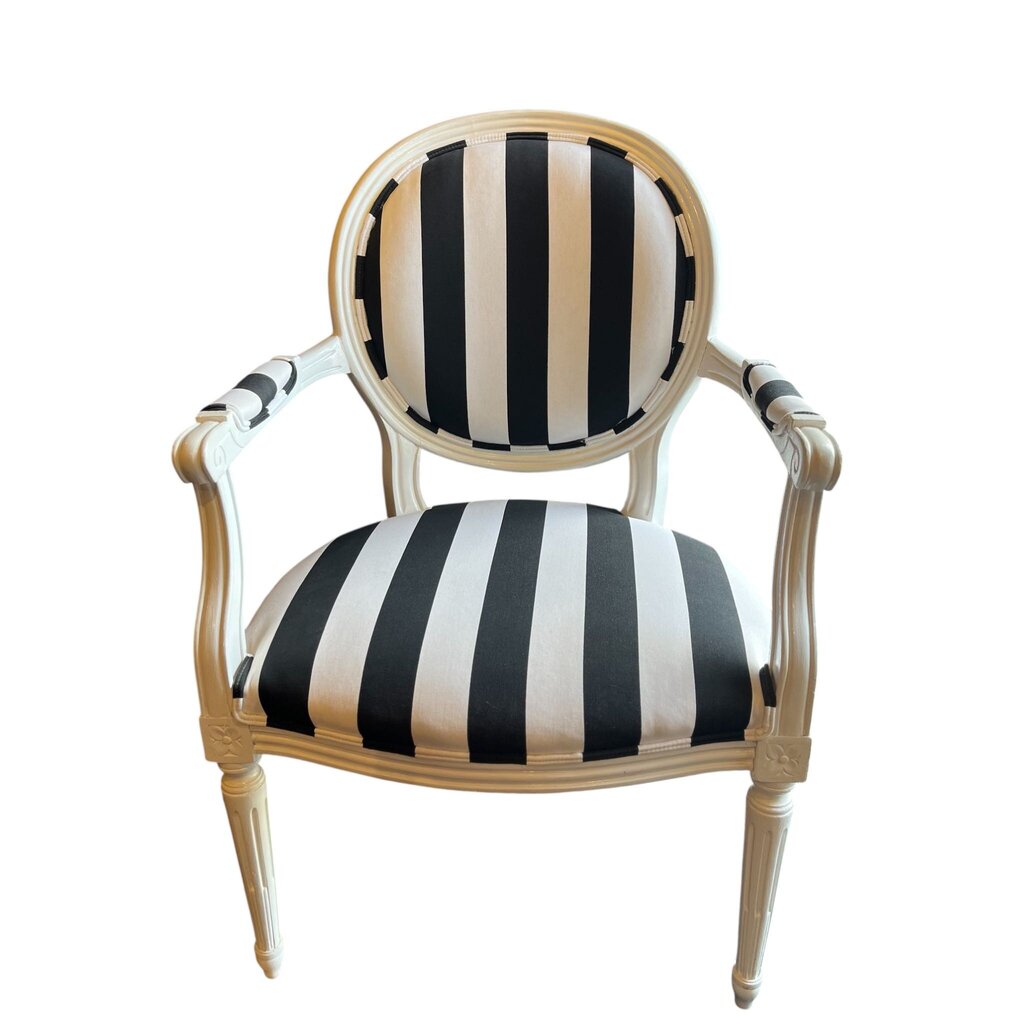 39"H x 25.5"W x 21"D Custom Black & White Stripe Chair w/ Sunbrella Fabric