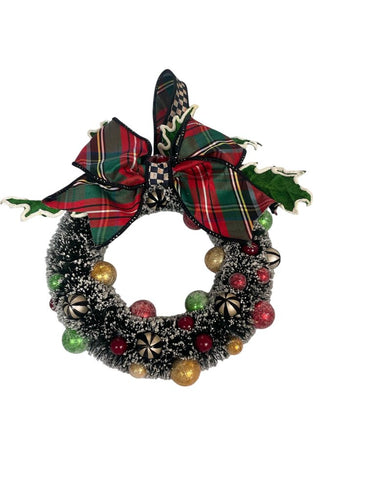 13" MacKenzie Childs Tartastic Small Bottle Brush Wreath