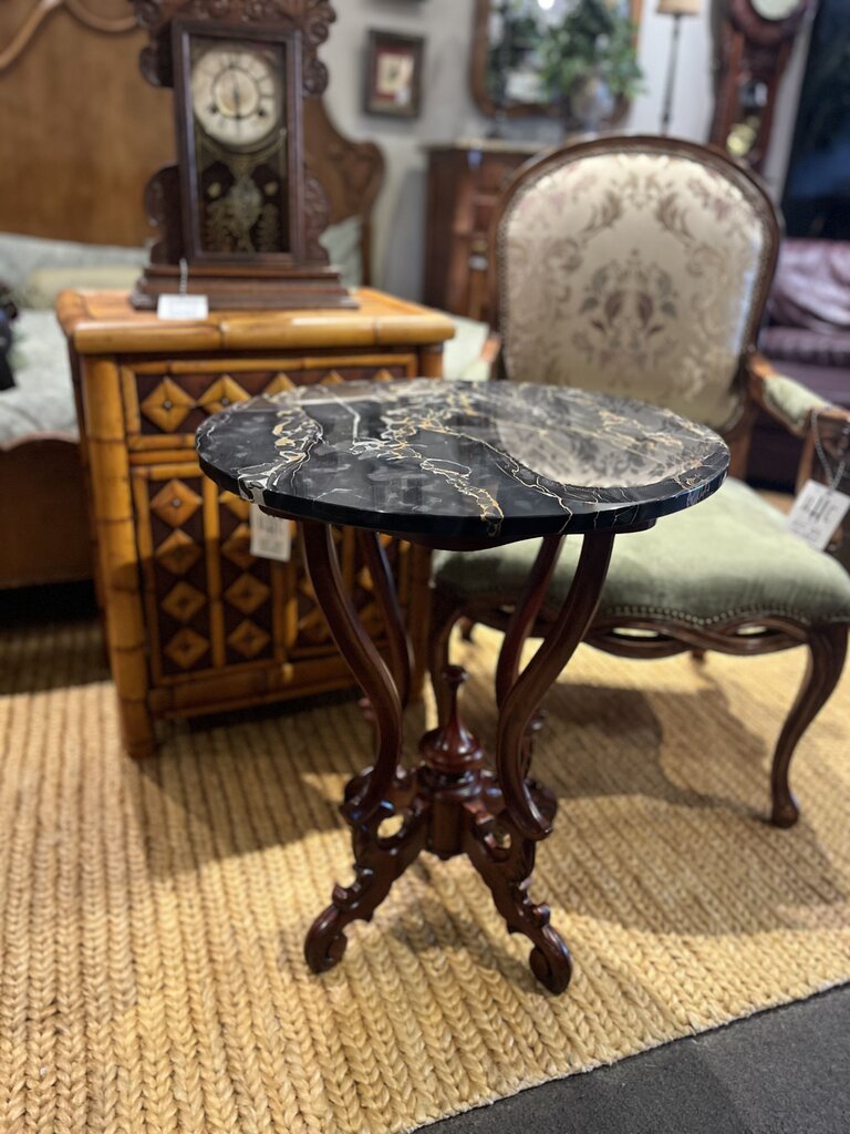 27"H x 24"D Marble Top Table w/ Wooden Legs