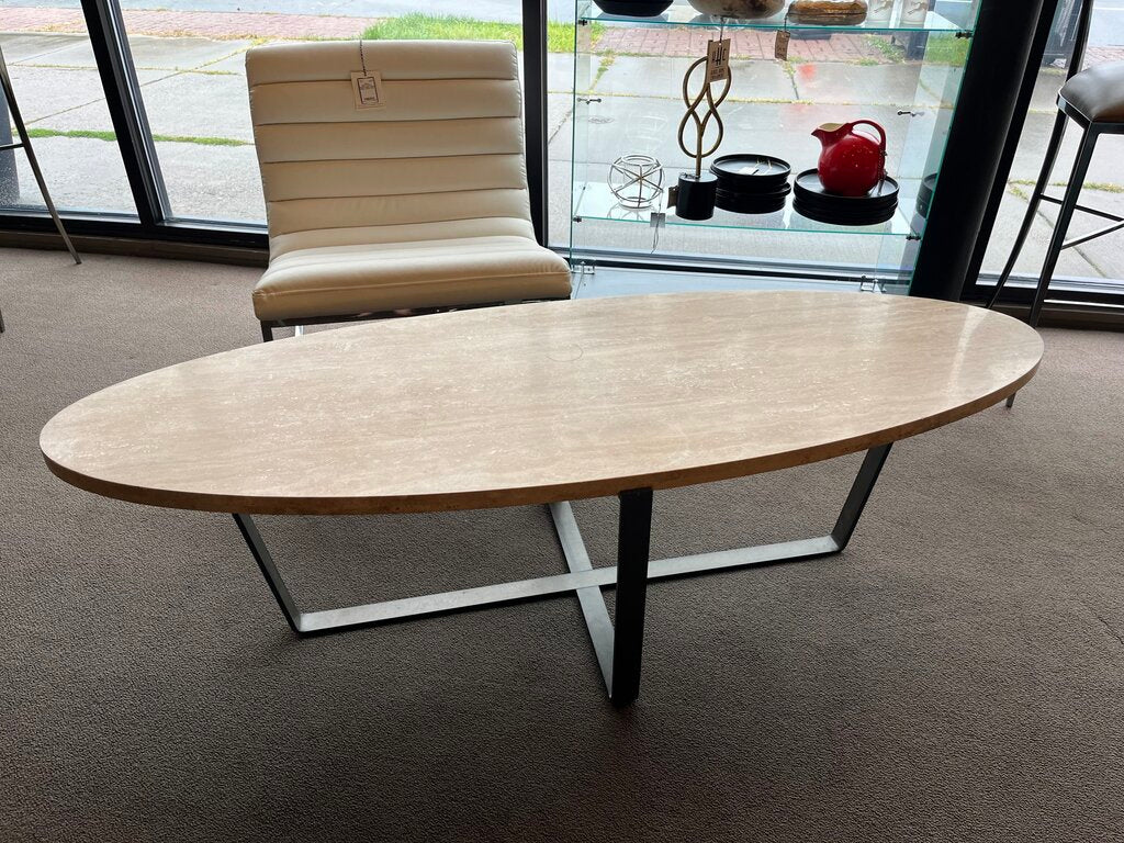 64"L x 22"D x 18.5"H Travertine Oval Coffee Table w/ Metal Legs