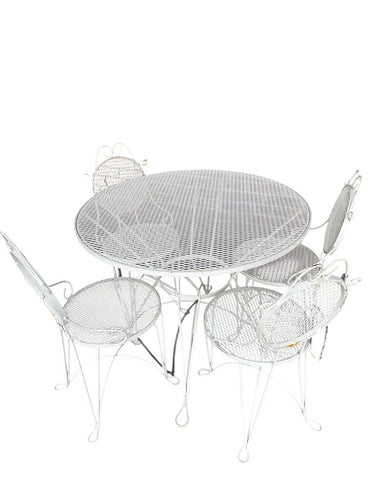 35" Dia. White Wrought Iron Table w/ 4 Chairs