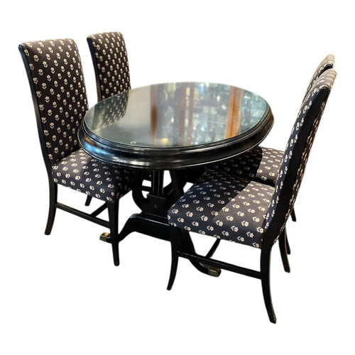 54.5"L x 35.5"D x 31"H Black Oval Dining Table w/ Harp Base w/ 4 chairs & 1 leaf