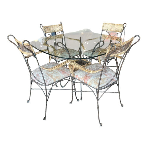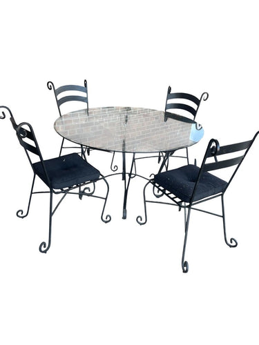 44" x 44" Wrought Iron & Glass Table w/ 4 Chairs 36" H x 23.5" W