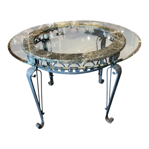45"Dia x 30"H Wrought Iron & Marble Table w/ Glass Top