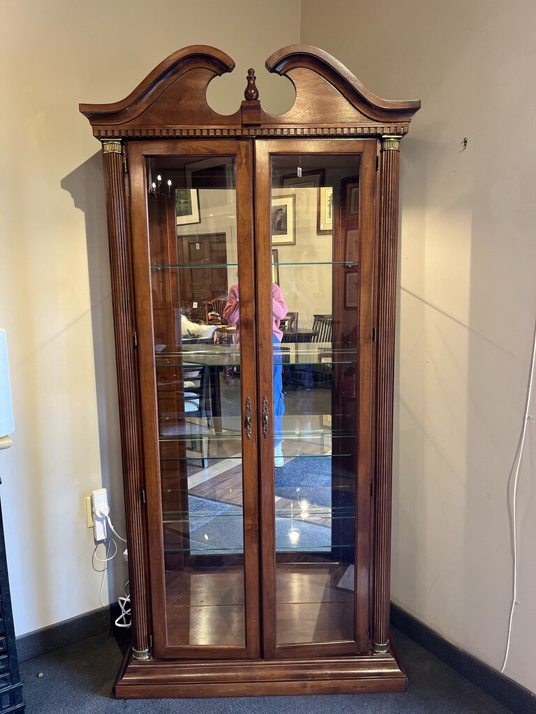 78.25"H x 34"W x 12"D Cherry Curio Cabinet w/ Glass Shelves