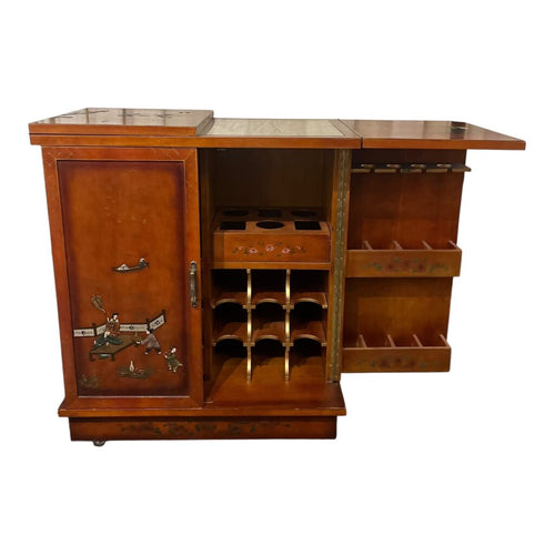 38.5"H x 33.25"W x 18.25"D Vintage Korean Rosewood Inlaid Dry Bar w/ Flip Top