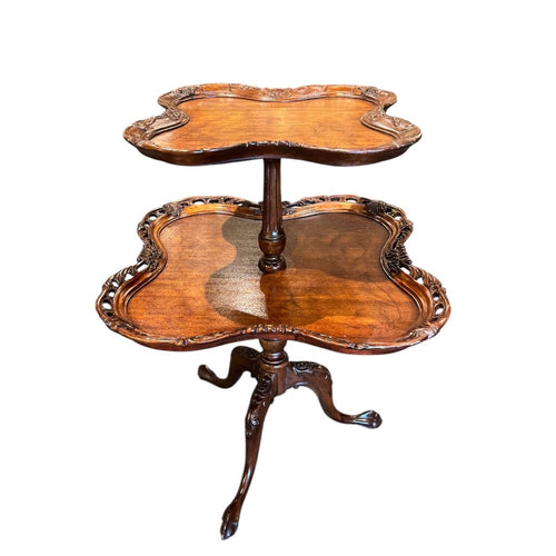 35"H x 29"Dia Antique Empire 2 Tier Carved Dumb Waiter Table w/ Claw Feet AS-IS