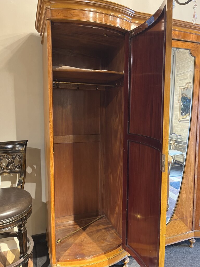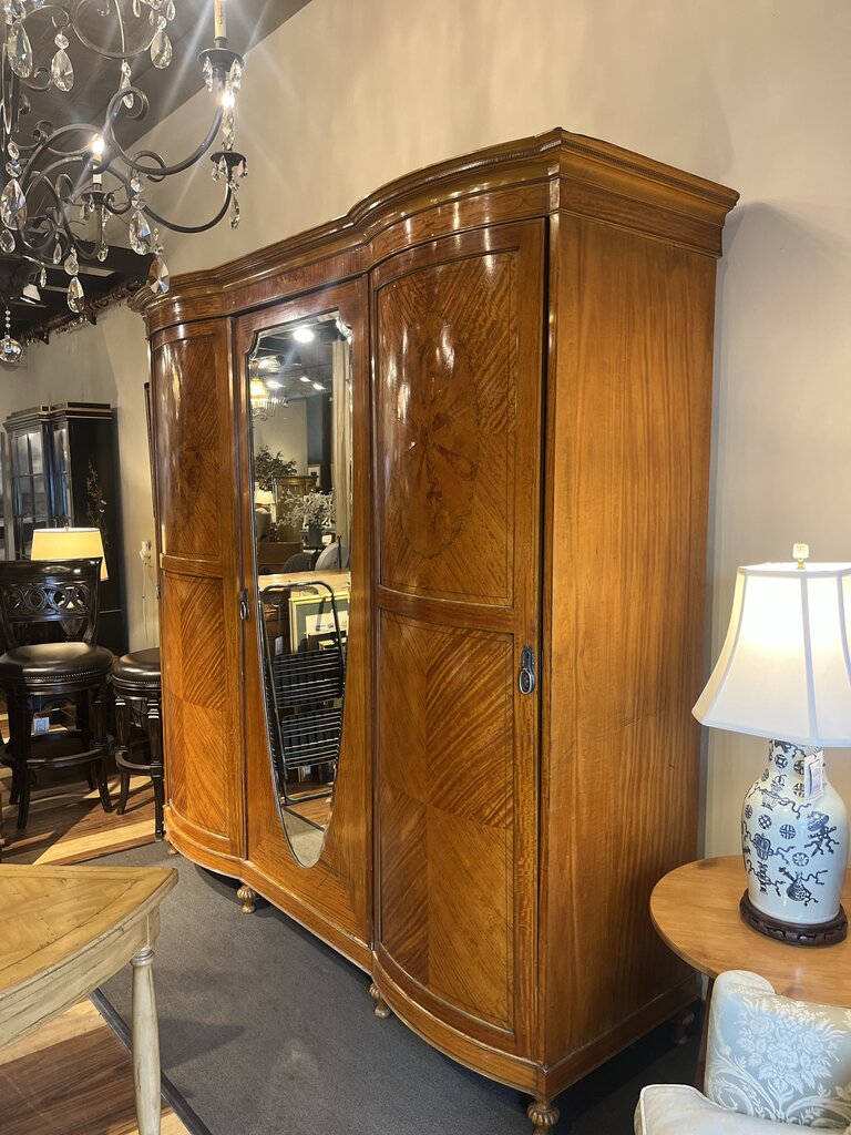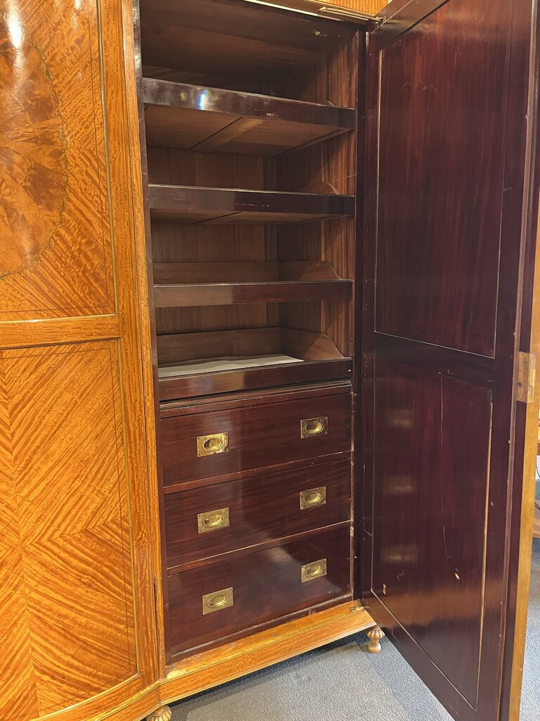 88"L x 87.25"H x 25"D Late 19th Centruy Satinwood Sheraton Revival Wardrobe