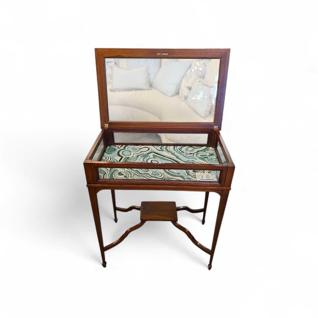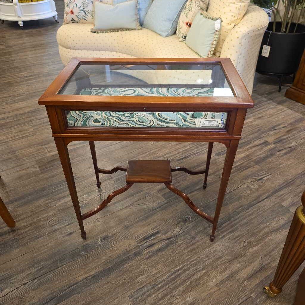 26" x 16" x 29" H Edwardian Antique Display Table w/ Hand Made Custom Fabric Lining