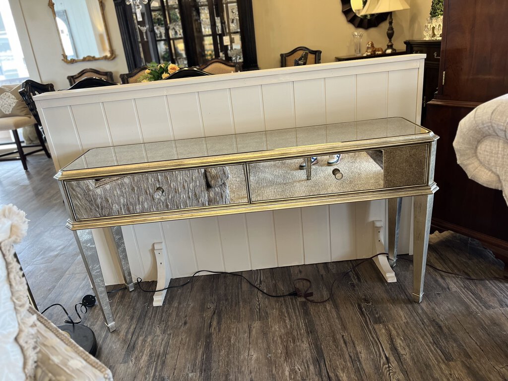 61" L x 16" W x 32.5" H ETHAN ALLEN 2 Drawer Mirrored Console Table