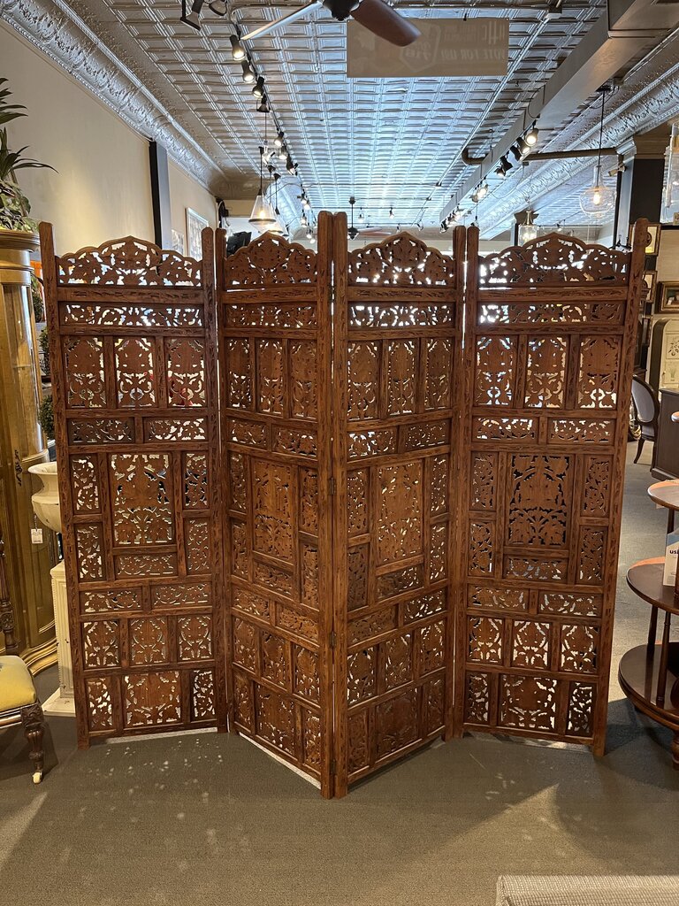68"H x 80"L Vintage 4 Panel Wooden Carved Folding Screen