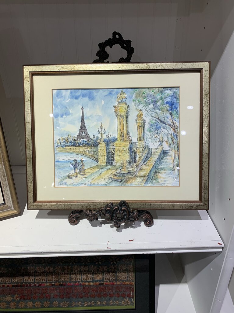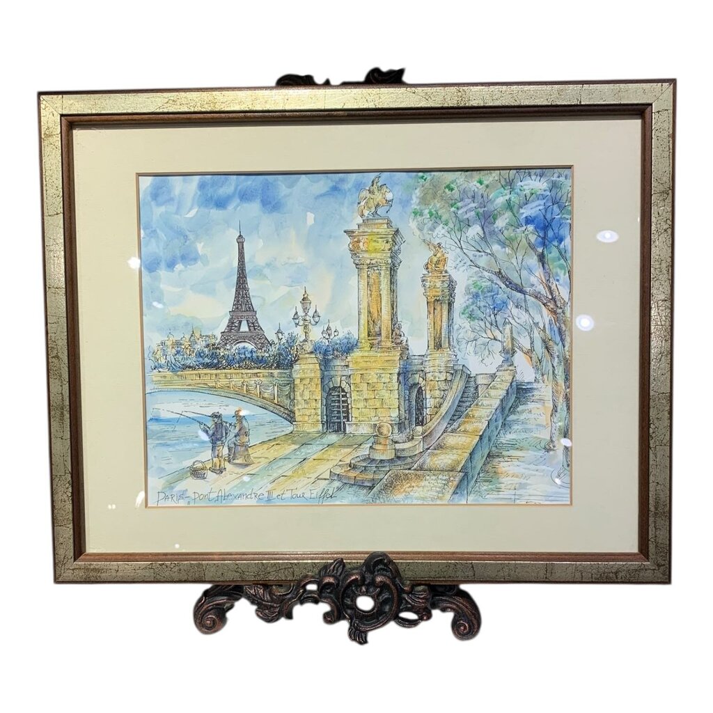 19.5" x 15.5" Paris Pont Alexandre III et Tour Eiffel Watercolor & Ink Illustrtaion