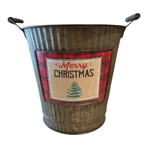 13" Merry Xmas Bucket w/ Wooden Handles