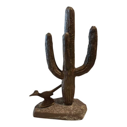 11" Brass Saguaro w/ Roadrunner vintage