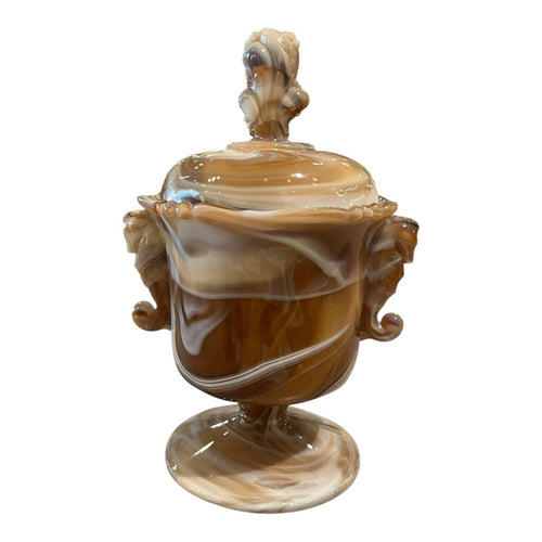 9" Vintage Imperial Slag Glass Seahorse Lidded Candy Jar