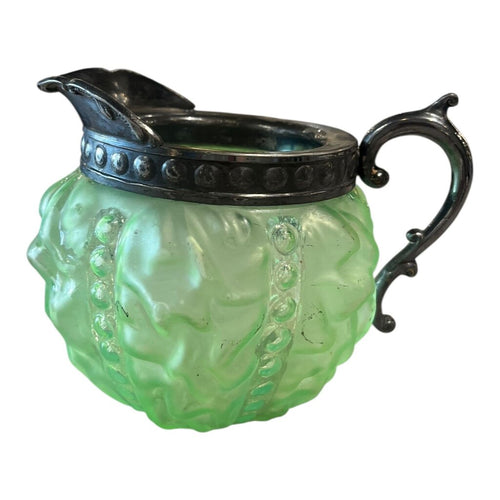 5" Antique Silver & Uranium Glass Creamer