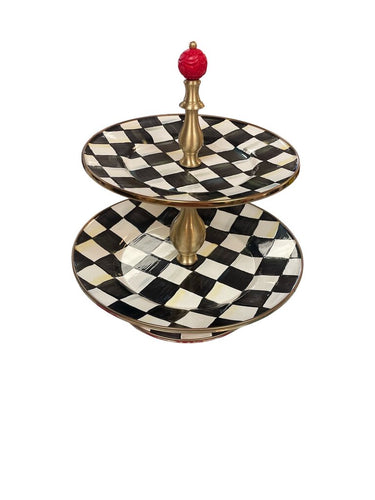 11" MacKenzie Childs Courtly Check 2 Tiered Sweet Stand
