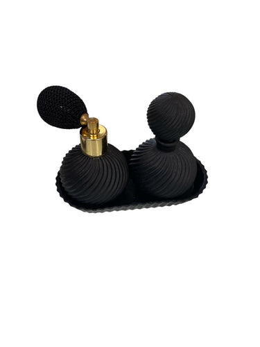 Vintage Set of 2 Black Amethyst Perfume Adomizer