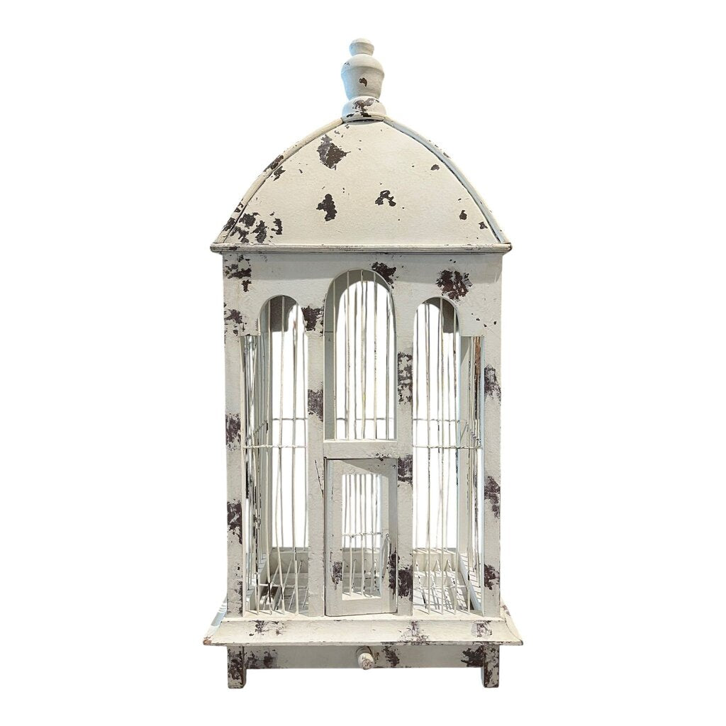 25.5" Rustic White Distressed Bird Cage