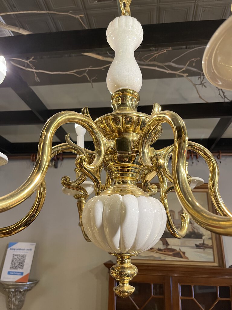 32" Lenox Porcelain & Brass 6 Light Chandelier