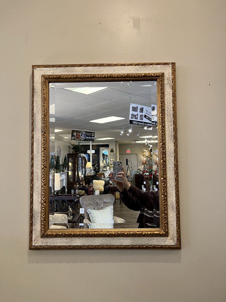 30" x 23.5 Gold Leaf & Ivory Framed Beveled Mirror