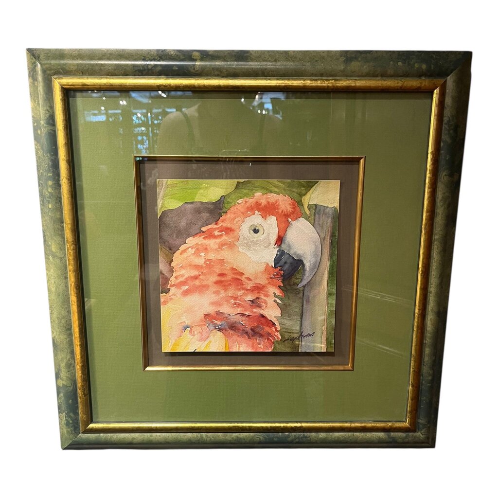 19.5"Sq "Parrot" Watercolor Painting signed w/ Custom Frame