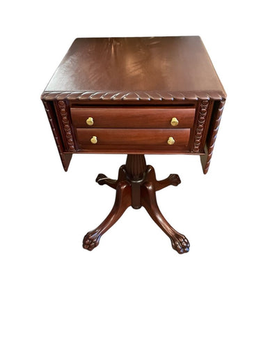 19" x 19" x 30 H (2- 10" Leaves) Drop Leaf Side Table Antique Late Federal Mahogany w/ Claw Feet