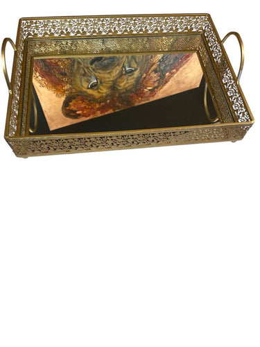 16" x 12" Gold Metal Mirrored Tray w/ Handles
