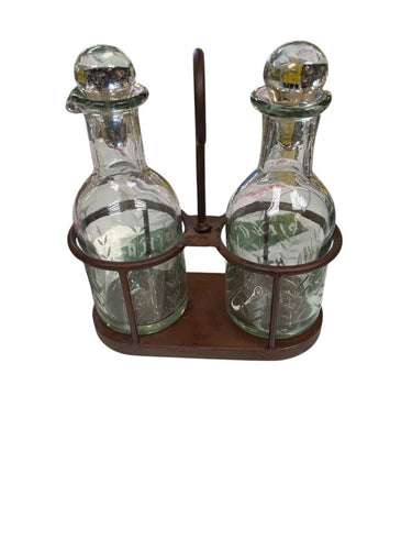 8.5" Pottery Barn Oil & Vinegar Cruets w/ Holder