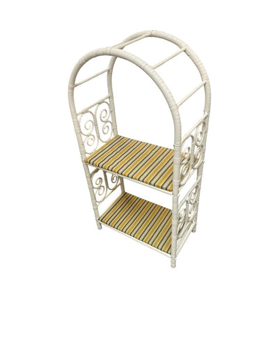 36" H x 18" W" x 10" D Vintage White Wicker Arched 2 Shelf Stand
