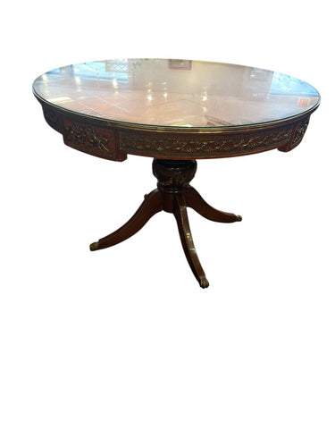 47" Dia. x 32.5" H Louis 16th Style, Center Entry Pedestal Table w/ Grass Garland & Cherub Motif
